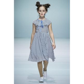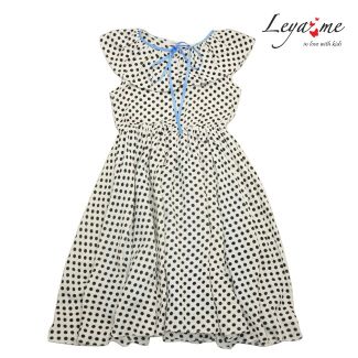 Закажите Leya.me Платье белое в черный горошек с оборкой на горловине и голубым бантом STC-008 у компании КИНДЕРСПБ.РУ в России на портале Alloy:
