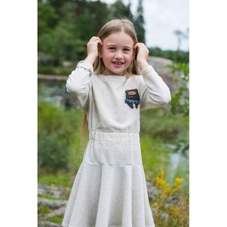 Базовое платье из комфортного бежево-молочного плотного трикотажа, с объемным воланом, актуальным кроем со пущенным плечом и нашивкой - медведем, созданным специально для коллекции. Объем по талии регулируется резинкой.Внимание! Фактический цвет изделия может незначительно отличаться от цвета на фотографии в связи с особенностями цветопередачи различных цифровых устройств. None