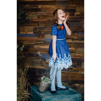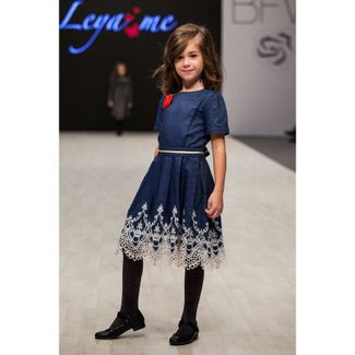 - Leya.me Платье из джинсы с кружевом по низу, в комплекте брошь-сердце PR-037 в каталоге Одежда для малышей в России;