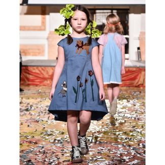 Хлопковое платье с подъюбником из фатина с аппликацией "Кошки - мышки".Внимание! Фактический цвет изделия может незначительно отличаться от цвета на фотографии в связи с особенностями цветопередачи различных цифровых устройств. None