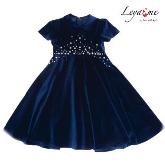 Закажите Leya.me Платье синее бархатное, расшитое жемчугом PR-030 у компании КИНДЕРСПБ.РУ в России на портале Alloy: