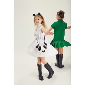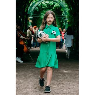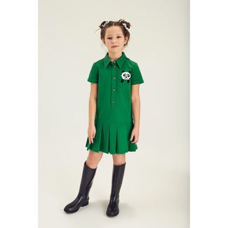 Яркое летнее платье спортивного кроя поло и юбкой в складку, с аппликацией панды на груди. Для девочек, сочетающих женственность и спортивность. Идеально с кедами и кроссовками. None