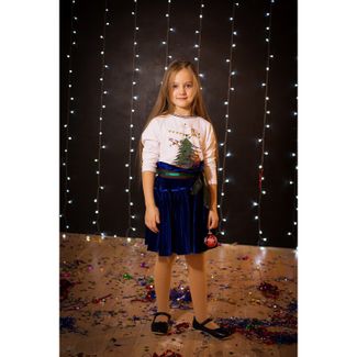 Трикотажный топ с цельнокроеным рукавом с праздничным новогодним принтом, декорированным бусинами и пайтеками.Внимание! Фактический цвет изделия может незначительно отличаться от цвета на фотографии в связи с особенностями цветопередачи различных цифровых устройств. None