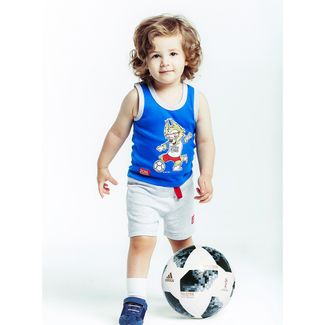 Для тех, кто не расстаётся с мячом даже во сне, просто необходима эта лёгкая и комфортная пижама. Майка насыщенного василькового цвета с изображением весёлого волка Забиваки и шорты цвета «серый меланж» с официальной нашивкой Чемпионата мира по футболу FIFA 2018 в России™ позволят малышу даже во время сна мечтать о своём великом футбольном будущем. Пижама изготовлена из высококачественного хлопка и окрашена гипоаллергенной краской на водной основе, что гарантирует комфорт и лучшие сны для маленького спортсмена. None Можно купить без предварительного заказа.