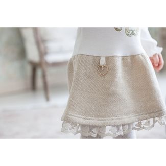 Каждая девочка мечтает стать принцессой. Какая принцесса в своих фантазиях не будет представлять себя в прекрасном наряде? Вот и наши дизайнеры решили, что юные леди должны и в повседневной одежде выглядеть стильно и красиво.Позолоченный футер в сочетании с интерлоком (трикотажная ткань из 100% хлопка) обладает невероятной мягкостью и бережно заботится о детской коже. Небольшое присутствие золотой металлизированной нити (люрекса) добавляет особое благородство наряду. «Сердечко», украшающее юбку, придает наряду праздничный блеск, рукава со сборками – элегантность. В платье от Lucky Child юная принцесса каждый день будет в центре внимания. None Можно купить без предварительного заказа.