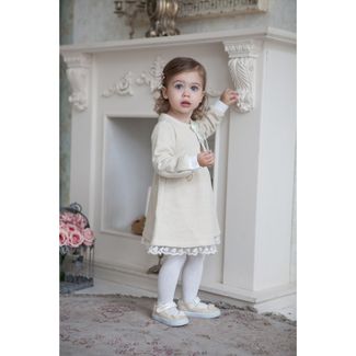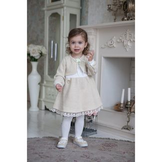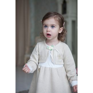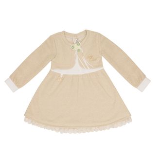 Бежевый цвет символизирует гармонию и божественность. В древности одежду бежевых тонов могли позволить себе только знатные люди. И сегодня бежевый цвет символизирует благородство и избранность.Нежная бутоньерка-розочка и украшение в форме сердечки подчеркивают нежность и благородство наряда, завышенные линии талии придают особое очарование.Футер в сочетании с интерлоком нежно заботится о коже ребенка. None Можно купить без предварительного заказа.