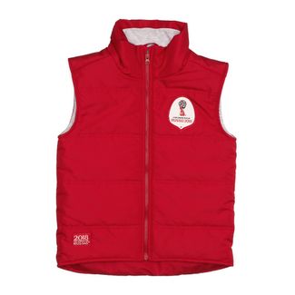 Утеплённый жилет насыщенного красного цвета с официальной нашивкой Чемпионата мира по футболу FIFA 2018 в России™ станет ярким элементом в гардеробе малыша. С этим жилетом даже прохладный день не остановит будущего чемпиона от новых спортивных достижений. Ведь в жилете так удобно прыгать через лужи и раскачиваться на качелях в парке. Если вдруг заморосит дождь, то прочная полиэстеровая ткань поможет добежать домой, не промокнув, а хлопковая подкладка сохранит тепло и комфорт. None Можно купить без предварительного заказа.