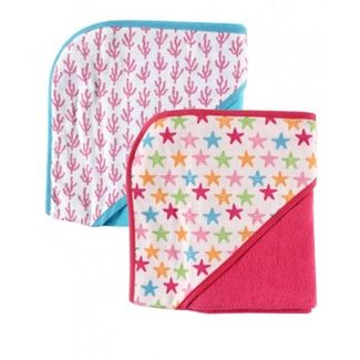 Комплект из двух мягких, тонких, разноцветных полотенец с капюшоном.С одной стороны - мягкая махра, максимально абсорбирующая влагу, с другой - гладкий трикотаж. Полотенца украшены весёлым принтом. None Можно купить без предварительного заказа.