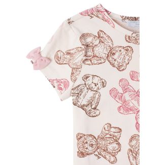 - Модель декорирована бантиками на рукавах.Основной цвет: мишки на молочном. Состав ткани: 95% Хлопок 5% Эластан. Материал: кулирная гладь. None
