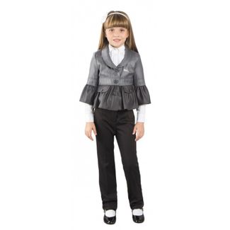 Стильный жакет для девочки из костюмной ткани поливискоза. За счет двойной структуры не мнется, проста в уходе. Стан изделия на подкладке. Фишка, которую полюбили еще с прошлого года - шпаргалка - таблица умножения. Укороченный силуэт делает модель не только стильной, но и универсальной - никогда не станет мала по длине. Рукава и низ изделия - объемны, но в тоже время одинарные, то есть не создадут проблем при глажке. Отлично сочетается с узкими юбками, брюками, сарафанами. Глубокий вырез с закругленным воротничком дает отличную возможность демонстрировать блузки с жабо и другим активным декорированием сверху, что в этом сезоне очень модно и во взрослой индустрии моды. None