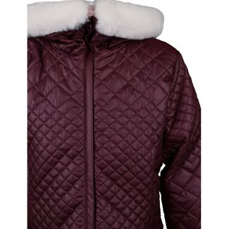 Зимнее атласное пальто для девочки. Модель выполенна силуэтом "в талию", есть большой капюшон. Меховая отделка капюшона и рукавов отстегивается. Фишка модели - ромбы, изменяющиеся от маленьких до больших. Особенности:
