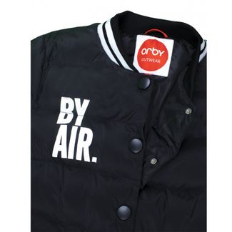 Ультрамодный вариант куртки-бомбера. Практичная модель выполнена в черном цвете с белыми принтами-надписями. Застегивается на кнопки, по низу и горловине отделка трикотажной резинкой. Куртка удлинена сзади, закрывает от ветра. Также есть утяжки на капюшоне и по низу модели. Особенности: