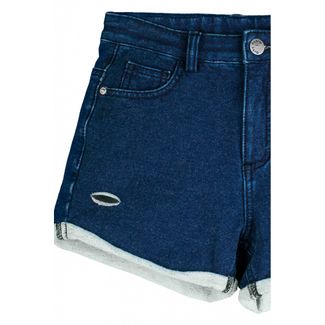 Стильные и комфортные шорты с завышеной талией из мягкого футера с окраской под джинс. Фишки модели - трендовый эффект разрушения и контрастные отвороты. Шорты круто смотрятся с короткими топами и футболками. None