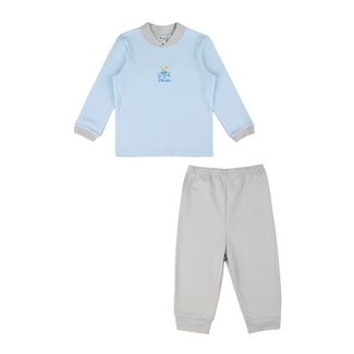 Пижама детская Picollino светло-голубой/серый выполнена из хлопка средней плотности. Горловина и манжеты пижамы оформлены трикотажной резинкой. Кофточка дополнена принтом на груди. Штанишки свободного кроя на резинке. Состав: 100% хлопок.Внимание! Фактический цвет изделия может незначительно отличаться от цвета на фотографии в связи с особенностями цветопередачи различных цифровых устройств. None
