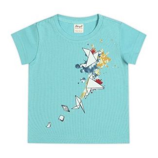 Стильная футболка для девочки из кулирного хлопкового трикотажного полотна с лайкрой. Футболка с округлым вырезом горловины, спереди принт в виде схемы сборки оригами птички.Прекрасное дополнение детского гардероба и отличный вариант для повседневной носки. None Можно купить без предварительного заказа.