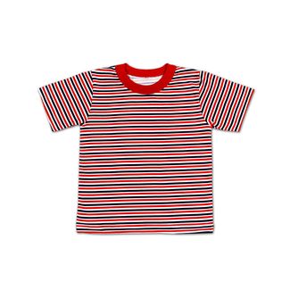 Полосатая футболка из кулирной ткани. Мягкая, приятная к телу, дышащая ткань. После стирки сохраняет свою форму, не мнется - не надо гладить. Удобно для мамы и малыша :) None