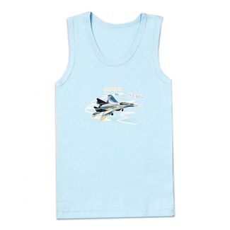 Трикотажная майка для мальчика из чистого хлопка. Материал дышит, не задерживает влагу, его комфортно носить даже очень активным малышам. На груди майки принт в виде самолета, автомобиля или мотоцикла. None