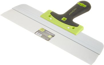 Предназначен для финишного нанесения и выравнивания шпаклевок и других строительных растворов, заделки трещин и швов. Имеет 2 – компонентную прорезиненную ручку с удобным захватом. Рабочее полотно шпателя изготовлено из нержавеющей стали.