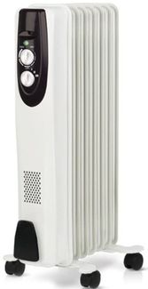 Предназначен для обогрева различных помещений. Полая герметичная металлическая конструкция наполнена специальным минеральным маслом. В качестве нагревательного элемента используется ТЭН с тремя ступенями мощности и расположенный в нижней части радиатора. Устройство работает от сети 220В. Площадь обогрева: 15-20м2