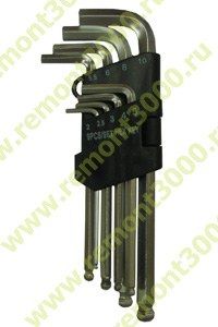 Хромованадиевая сталь. Размеры ключей в комплекте, мм: 1,5 х 47, 2 х 50, 2,5 х 58, 3 х 66, 4 х 74, 5 х 85, 6 х 92, 8 х 106, 10 х 122. Наличные, банковская карта, безнал (с НДС)