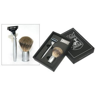 Станок для бритья, к нему подходят лезвия "Gillett Mach 3" Помазок из натурального ворса (барсук)