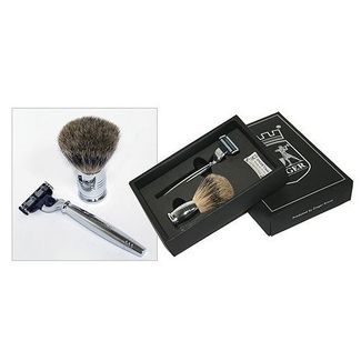 Станок для бритья, к нему подходят лезвия "Gillett Mach 3" Помазок из натурального ворса (барсук)