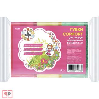 - ELFE Губки для посуды профильные Comfort, 85 х 65 х 42 мм, 3 шт, Россия Elfe по выгодной цене 15 р. руб.;