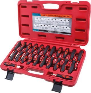 В комплект входит 23 приспособления для разъединения электрических разъемов. Подходят для большинства марок автомобилей: VW/Audi, Opel, Ford, Renault, BMW, Mercedes, Skoda, Seat, Saab, Porsche, Jaguar, Citroen, Fiat, Honda, Mazda, Chrysler, Toyota, Mitsubishi. None