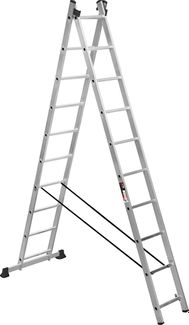 Лестница-стремянка двухсекционная при одинаковой максимальной высоте занимает намного меньше места по сравнению с односекционной моделью, что облегчает ее транспортировку и хранение. Можно использовать не только в качестве приставной лестницы, но и как стремянку. Лестница-стремянка двухсекционная не нуждается в дополнительной вертикальной опоре. Благодаря телескопической конструкции можно регулировать высоту конструкции. Стабилизатор отличается увеличенной шириной, для более надежного использования двухсекционной лестницы. Максимальная высота: 5,62 м Количество ступеней: 2?12 Вес стремянки: 11,7 кг Максимальный вес пользователя: 150 кг None
