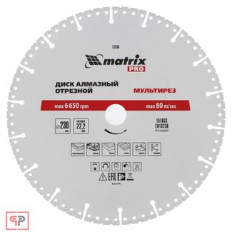 - Matrix Диск алмазный отрезной "Мультирез" D 230 х 22.2 мм, сухой мокрый рез, PRO Matrix по выгодной цене 1 581 р. руб.;