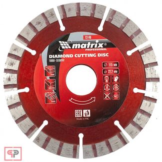 - Matrix Диск алмазный, отрезной Турбо-сегментный, 115 х 22,2 мм, сухая резка Matrix Professional по выгодной цене 281 р. руб.;