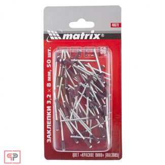 - Matrix Заклепки 3,2 х 8 мм RAL 3005, красное вино, 50 шт Matrix по выгодной цене 64 р. руб.;