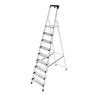 Предназначена для выполнения строительных, ремонтных, отделочных или иных видов работ, когда необходимо произвести какие-либо действия на высоте. В основании стремянки прочная рама из алюминиевого профиля прямоугольного сечения. Пластиковые наконечники препятствуют скольжению, и обеспечивают отличную устойчивость. Многократное клепаное соединение ступеней с рамой обеспечивает исключительную надежность и безопасность при работе на стремянке. Имеет ступени шириной 130 мм, что позволяет стопе комфортно размещаться на лестнице. Рабочая высота – это параметр, рассчитываемый путем сложения высоты верхней секции лестницы/стремянки и роста человека с вытянутой вверх рукой (в среднем, два метра).