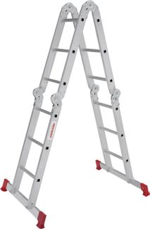 Предназначена для выполнения строительных, ремонтных, отделочных или иных видов работ, когда необходимо произвести какие-либо действия на высоте. Может использоваться как приставная или свободностоящая лестница, а также как рабочий помост. Лестница техническая алюминиевая 4-х секционная, в каждой секции 3 ступеней. Фиксация и устойчивость обеспечиваются широкими поперечными траверсами. Регулировка положения осуществляется с помощью стальных шарниров. Рабочая высота – это параметр, рассчитываемый путем сложения высоты верхней секции лестницы/стремянки и роста человека с вытянутой вверх рукой (в среднем, два метра).