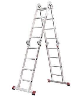 Предназначена для выполнения строительных, ремонтных, отделочных или иных видов работ, когда необходимо произвести какие-либо действия на высоте. Может использоваться как приставная или свободностоящая лестница, а также как рабочий помост. Лестница техническая алюминиевая 4-х секционная, в каждой секции 4 ступени. Фиксация и устойчивость обеспечиваются широкими поперечными траверсами. Регулировка положения осуществляется с помощью стальных шарниров.