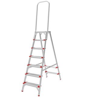 Предназначена для выполнения строительных, ремонтных, отделочных или иных видов работ, когда необходимо произвести какие-либо действия на высоте. В основании стремянки прочная рама из алюминиевого профиля прямоугольного сечения. Пластиковые наконечники препятствуют скольжению, и обеспечивают отличную устойчивость. Многократное клепаное соединение ступеней с рамой обеспечивает исключительную надежность и безопасность при работе на стремянке. Имеет восемь ступеней шириной 130 мм, что позволяет стопе комфортно размещаться на лестнице, а так-же увеличенную дугу безопасности длинной 800 мм. Рабочая высота – это параметр, рассчитываемый путем сложения высоты верхней секции лестницы/стремянки и роста человека с вытянутой вверх рукой (в среднем, два метра).