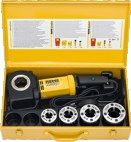 Высокопроизводительный, удобный электроинструмент для нарезания резьбы с оригинальным, запатентованным бугелем. Применим повсюду без тисков. Идеален для ремонта и стройплощадки. Системное преимуществоТолько один вид маленьких, компактных, быстросменных резьбонарезных головок и только один вид резьбонарезных плашек для всех клуппов REMS.Запатентованный бугельКачественный, надёжный и удобный для работы опорный бугель для упора во время вращения в обоих направлениях. Надежно закрепляет трубу за счет наклонного зажимного шпинделя. Легко и быстро труба вставляется в бугель и и в клупп.КонструкцияКомпактный, многофункциональный. Благодаря оптимальной форме клуппа Вы можете работать даже в труднодоступных местах. Привод всего 3,5 кг. Легкий редуктор, поэтому возможна работа одной рукой. Оптимальная превосходная посадка быстросменных резьбонарезных головок.ПриводНадёжный, компактный, не требующий технического обслуживания редуктор. Мощный универсальный двигатель 1.200 Вт с 30% увеличением мощности посредством автоматической перестановки угольных щёток при выборе направления вращения. Максимально потребляемая мощность до 1800 Вт при полной нагрузке. Скорость реза 35–27 мин-1. Толчковый выключатель.Быстросменные резьбонарезные головкиНадежная техника, высококачественный материал и точная обработка головки, гребенок и корпуса гарантируют суперлегкий надрез трубы и легкоенарезание резьбы. Гребенки не дерут. Длинная точная направляющая обеспечивает великолепное центрирование трубы. Хороший отвод стружки за счет отверстий в головке для нарезания чистой резьбы.Резьбонарезные гребенкиНадежные, прочные, качественные плашки REMS с оптимальной геометрией лезвий гарантируют сверхлегкий надрез трубы и нарезание чистой резьбы. Изготовлены из закаленной, специальной стали для длительного срока эксплуатации.