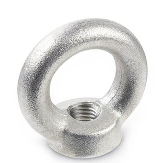 Рым-гайка представляет собой кольцо, в основании которого расположено сквозное отверстие с метрической резьбой. Крепление рым-гаек осуществляется на закладные болты. Если гайки подобной формы используются для подъемов тяжестей, то процесс подъема может осуществляться только по оси гайки.