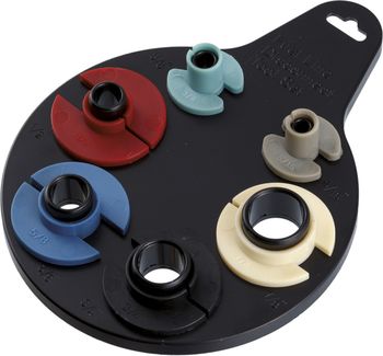 Особенности: Набор включает шесть съёмников и держатель. Для информативности съёмники выполнены из пластика разных цветов. Форма и размер съёмников позволяют использовать их в ограниченном пространстве.