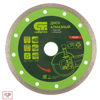 - СИБРТЕХ Диск алмазный, отрезной сплошной, 150 х 22,2 мм, мокрая резка Сибртех в каталоге Офтальмологические инструменты в России;