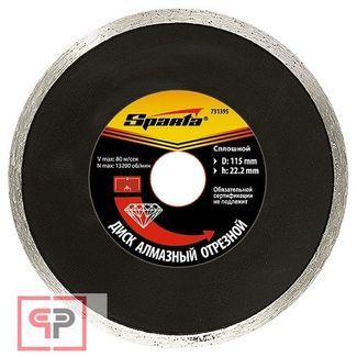 - SPARTA Диск алмазный, отрезной сплошной, 230 х 22,2 мм, мокрая резка Sparta по выгодной цене 395 р. руб.;