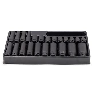 TT-60 Ложемент длинных ударных головок на 23 предмета 843000M Головка ударная длинная 1/2": 10, 11, 12, 13, 14, 16, 17, 19, 21, 22, 24, 27, 30, 32 мм 84410E Головка ударная E-STAR 1/2": E10, E11, E12, E14, E16, E18, E20, E22, E24 Размеры ложемента: 380х190х45 мм