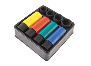 Набор ударных головок 1/2" Hans в ложементе: 84304P – Головка ударная тонкостенная 1/2" для литых дисков: 17, 19, 21, 22 мм 84404M – Головка ударная тонкостенная 1/2": 17,19,21,22 мм Размеры ложемента: 150х130х45 мм