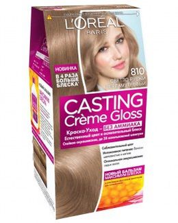 Крем-краска для волос L oreal Сasting Creme Gloss тон 810 Перламутровый русый не содержит аммиака, эффективно закрашивает седые волосы, даря им яркий насыщенный цвет и здоровый блеск. Входящий в комплект бальзам краски Лореаль Кастинг с Пчелиным Маточным молочком, применяемый после окрашивания волос, питает и ухаживает за волосами по всей длине, обеспечивая им здоровое сияние до следующего окрашивания. Крем-краска Лореаль Кастинг Крем Глосс обеспечивает высокую стойкость цвета, сохраняя его яркость до 28 применений шампуня. Минимальная сумма заказа 1500 руб. Возможен самовывоз. Есть доставка.