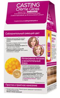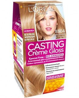 Крем-краска для волос L oreal Сasting Creme Gloss тон 8304 Карамельный капучино не содержит аммиака, эффективно закрашивает седые волосы, даря им яркий насыщенный цвет и здоровый блеск. Входящий в комплект бальзам краски Лореаль Кастинг с Пчелиным Маточным молочком, применяемый после окрашивания волос, питает и ухаживает за волосами по всей длине, обеспечивая им здоровое сияние до следующего окрашивания. Крем-краска Лореаль Кастинг Крем Глосс обеспечивает высокую стойкость цвета, сохраняя его яркость до 28 применений шампуня. Минимальная сумма заказа 1500 руб. Возможен самовывоз. Есть доставка.