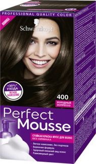 Краска-мусс для волос Schwarzkopf Perfect Mousse тон 400 Холодный эспрессо - стойкая краска-мусс без аммиака, которая содержит ухаживающие компоненты: масло арганы и аминокислоту. Удобна в использовании и легко наносится - как шампунь. Краска имеет густую насыщенную текстуру мусса, что обеспечивает точное дозирование и равномерное распределение по волосам без подтёков. Результат: яркий и благородный тёмно-каштановый цвет и мерцающий блеск. При необходимости эффективно закрашивает седину. Минимальная сумма заказа 1500 руб. Возможен самовывоз. Есть доставка.