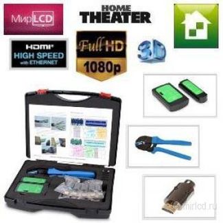 Набор оборудования. Набор оборудования для обжима и тестирования HDMI кабеля. Для некоторых конкретных применений предварительно собранные кабели непригодны. Комплект PRO-HDCASE для обжима HDMI кабеляс позволяет проложить HDMI кабель внутри кабель-канала и лишь после обжать вилки HDMI с каждой стороны, без какой-либо пайки или сложной оснастки. Имеется тестер кабеля чтобы проверить успешную установку. Инструментарий PRO-CASE содержит все необходимое для сборки HDMI кабелz по мере необходимости. Обжимной инструмент, тестер кабеля, обжим держатели, руководство и 20 разъемов HDMI. Сборка кабеля занимает всего несколько минут. Оплетка кабеля HDMI должна быть развернута. Затем необходимо вставить в кабель держатели в соответствии с цветовыми кодами, а обжимной инструмент должен использоваться для соединения всего вместе. Наконец, 2 держателя должны навинчивается на вилку. Тестер это важный инструмент, позволяющий проверить успешный обжим контактов кабеля. Кабель на разрыв также может быть проверен Благодаря двум отделяемым частям инструмента (малый с одной стороны, а большой с другой). Обжимной инструмент это важный инструмент, специально разработанный для обжима разъема на кабеле HDMI. Разъем HDMI PRO-HDPLUG специально разработанный штекер для быстрой и надежной опрессовки. Позолоченные разъемы, металлический корпус для лучшей защиты (разъем HDMI папа). Производитель Франция. None