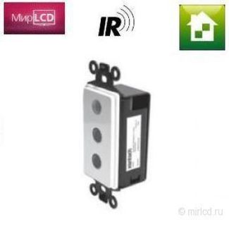 ИК-излучатель. Мощный ИК-излучатель монтируемый в стену. Передача ИК сигнала в радиусе до 10 метров. Конструкция для встраиваемого монтажа. Встройка в розетку размером 1 Gang. Декоративная вставка белого цвета. Питание 12 В постоянного тока, 200 мА. С видимым повторителем (красная вспышка) LED (внутренний). 3 позиционный переключатель интенсивности передачи. Три терминала для проводного подключения ИК-приемников. Производитель: США. None