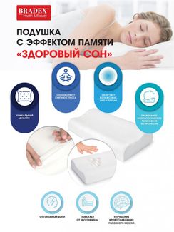 Ортопедическая подушка Memory Pillow Подушка анатомическая Memory Foam Pillow – это забота о Вашем комфорте ночью. Основной секрет этого продукта — уникальная высокоэластическая пена "с памятью". Доставка по всей РФ. Бесплатный самовывоз в Москве Возможен самовывоз. Есть доставка.