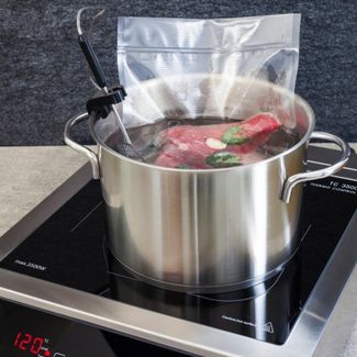 - готовка до достижения требуемой температуры внутри куска мяса или рыбы с точностью 1 °C Выбор одного из 12 уровней мощности. Первые 3 уровня для поддержания температуры или подогрева. Автоматическое определение пригодной посуды (от 14 до 28 см с положительной магнитной восприимчивостью) Сенсорная панель управления, индикатор остаточного тепла поверхности > 50 °C Таймер на 180 мин. с автоматическим отключением и звуковой сигнал о завершении Максимальный вес посуды и содержимого не должен превышать 10 кг None Возможен самовывоз. Есть доставка.